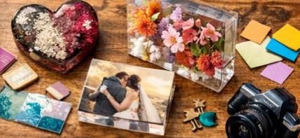 - Custom photo resin blocks capturing cherished moments.